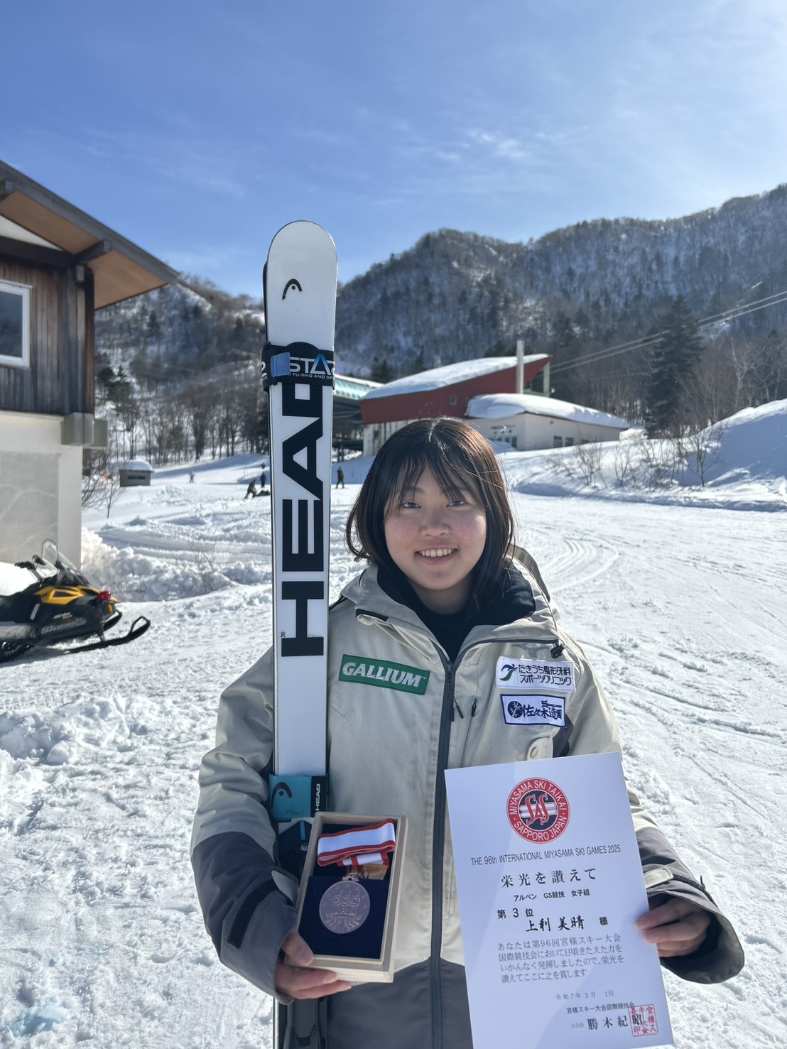 栗山町出身の日本大学所属でアルペンスキー選手・上利 美晴(あがり みはる)さん。